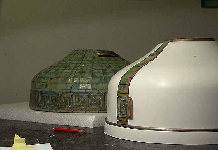 The fiberglass mold is completed here and some of the original glass pieces (which were