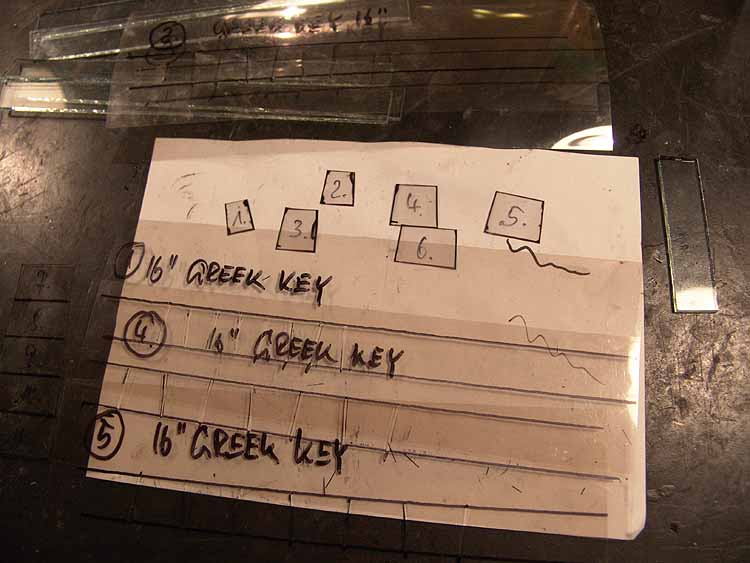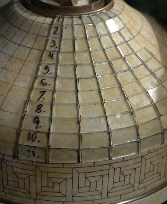 We cut a stencil from clear film for every of the 11 sizes needed for the upper portion of the shade: