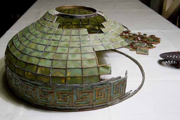 This antique lamp shade had been stored since a hobbyist`s unsuccessful try to repair 20 years ago.